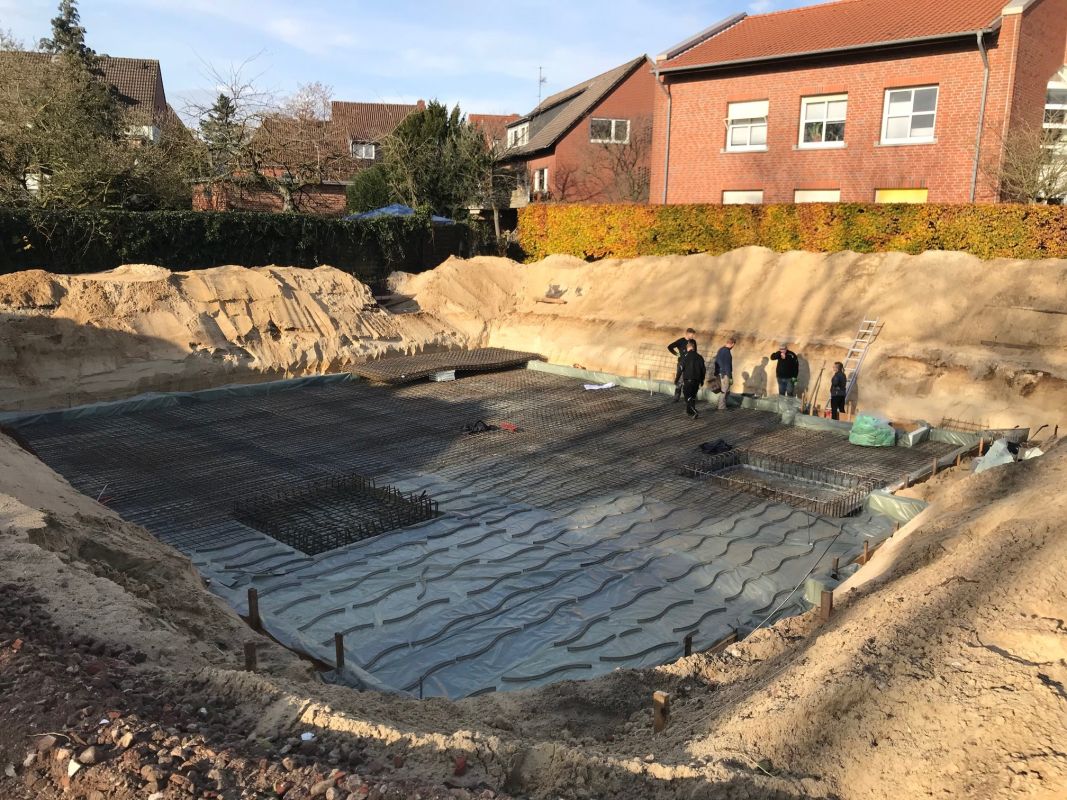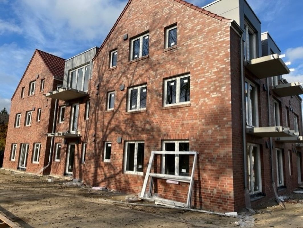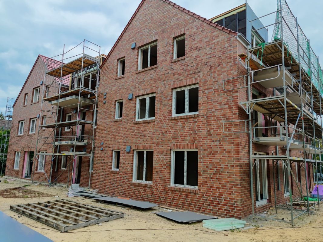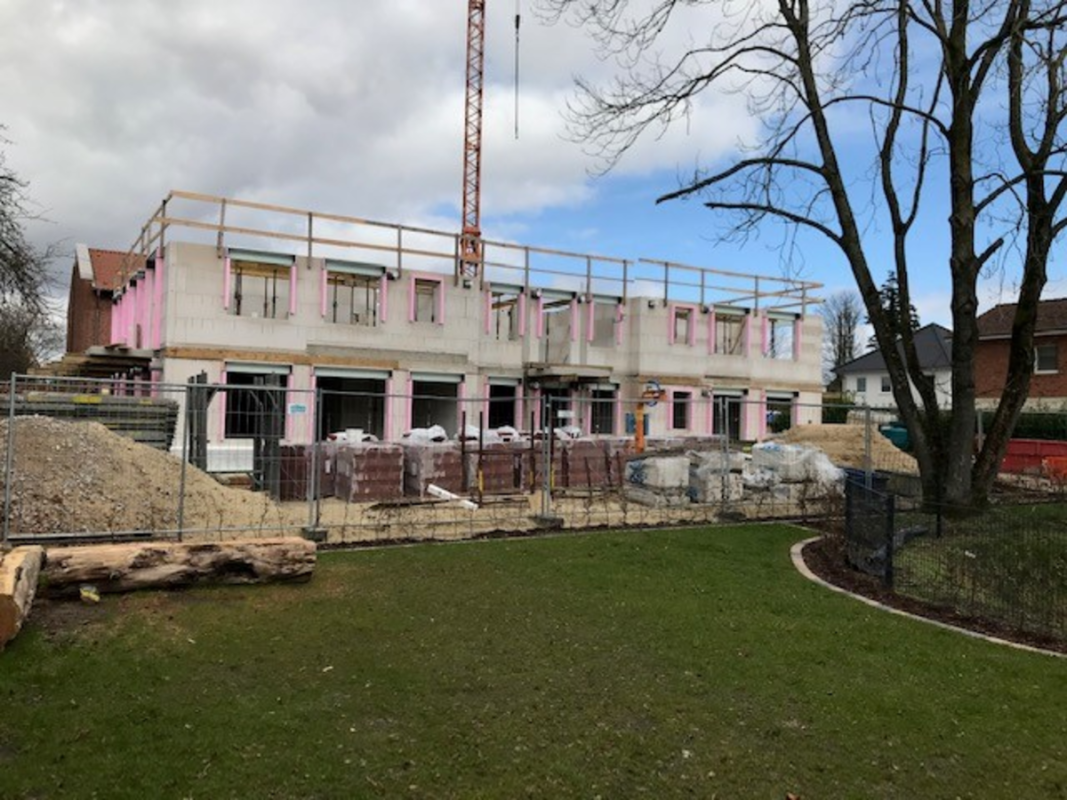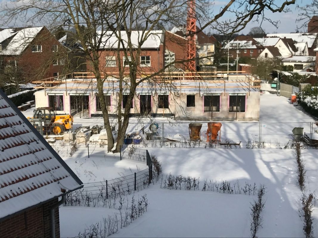 Die ersten Sonnenstrahlen legen sich über das Emsland. Wir steuern auf den Frühling zu. Auch unser Neubau in der Vitusstraße macht Fortschritte. Das Obergeschoss des Hauses entsteht. Zudem sind die Balkonüberstände gelegt. Alle Bauarbeiter sind mit viel Herzblut bei der Sache! Weiter so!