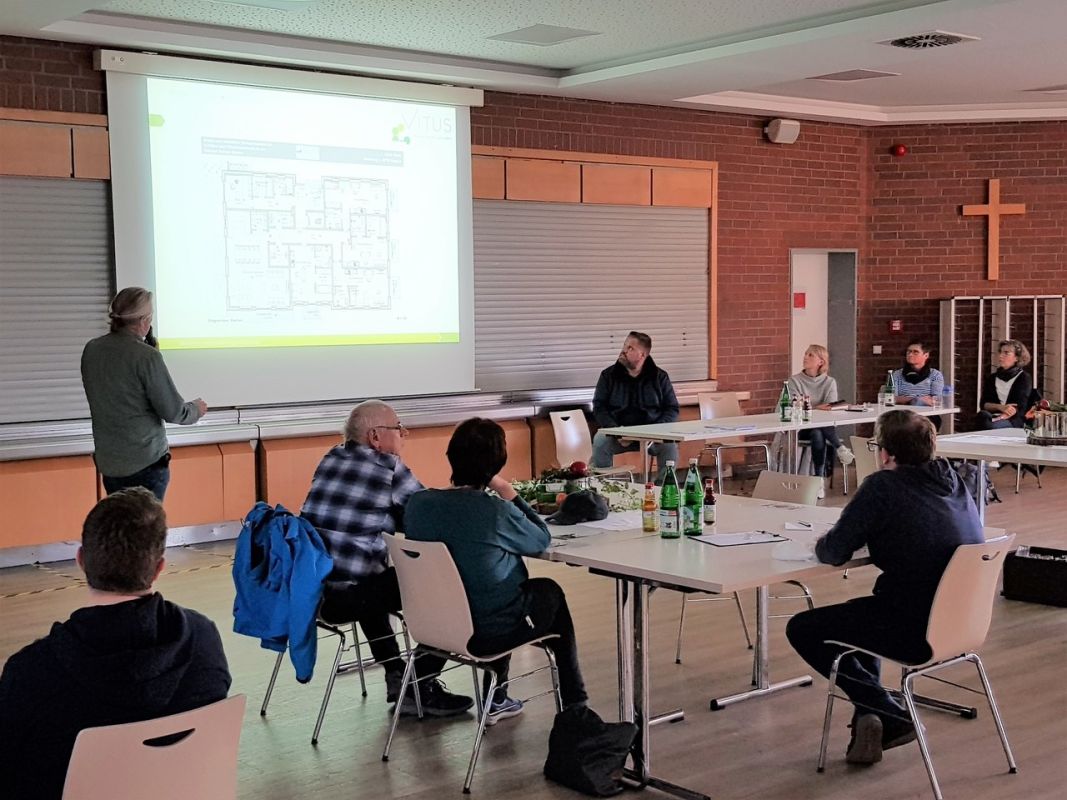 Am 04.Oktober 2021 fand der erster Infoabend für die neuen Mieter samt Angehörigen statt. Kompetenzfeldleiter, Marco Strodt-Dieckmann begrüßte alle Anwesenden und stellte nachfolgend die Beweggründe für den Bau sowie die konzeptionellen Inhalte vor. Hans Grönniger, Bereichsleiter Wohnen informierte danach über den Stand der Bauarbeiten. Bernhardine Schiering und Sabine Lampe von der EUTB Emsland gaben danach Einblicke in den Bereich der Assistenz- und Pflegeleistungen. Svea Richter und Jens Wessels aus dem Fachdienst Wohnen bei Vitus luden die Mieter und Angehörigen zum Ende ein, Fragen zum weiteren Prozedere zu klären. Ein zweiter Infoabend folgt in Kürze. Im November sind alle neuen Mieter und Angehörige zu einer ersten Baubegehung eingeladen.