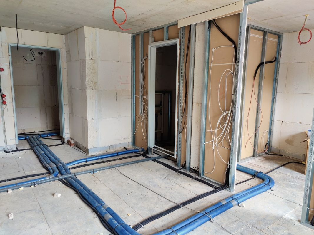 Wir wünschen ihnen einen guten Start in das neue Jahr 2022! Über den Jahreswechsel war es sehr ruhig auf der Baustelle. Nun gehen die Arbeiten im Innenbereich des Hauses aber weiter. Die Fliesen werden gelegt. Unzählige Meter an Kabel werden gezogen. Zudem bringen die Maler eine Menge Farbe ins Spiel. Die ersten Mieter waren mit ihren Angehörigen bereits im Haus um die Räumlichkeiten zu besichtigen.